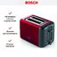 Стильный тостер Bosch имеет компактный корпус на устойчивых ножках, благодаря которым не пошатывается, даже если хлеб выпрыгивает вверх в конце приготовления. Основной материал, из которого изготовлен прибор, — нержавеющая сталь. Его главный оттенок — красный. Простое и понятное механическое управление позволяет быстро разобраться во всех функциях. Простое и понятное электронное управление позволяет быстро разобраться во всех функциях. На корпусе расположены кнопочные+поворотные переключатели для изменения настроек.