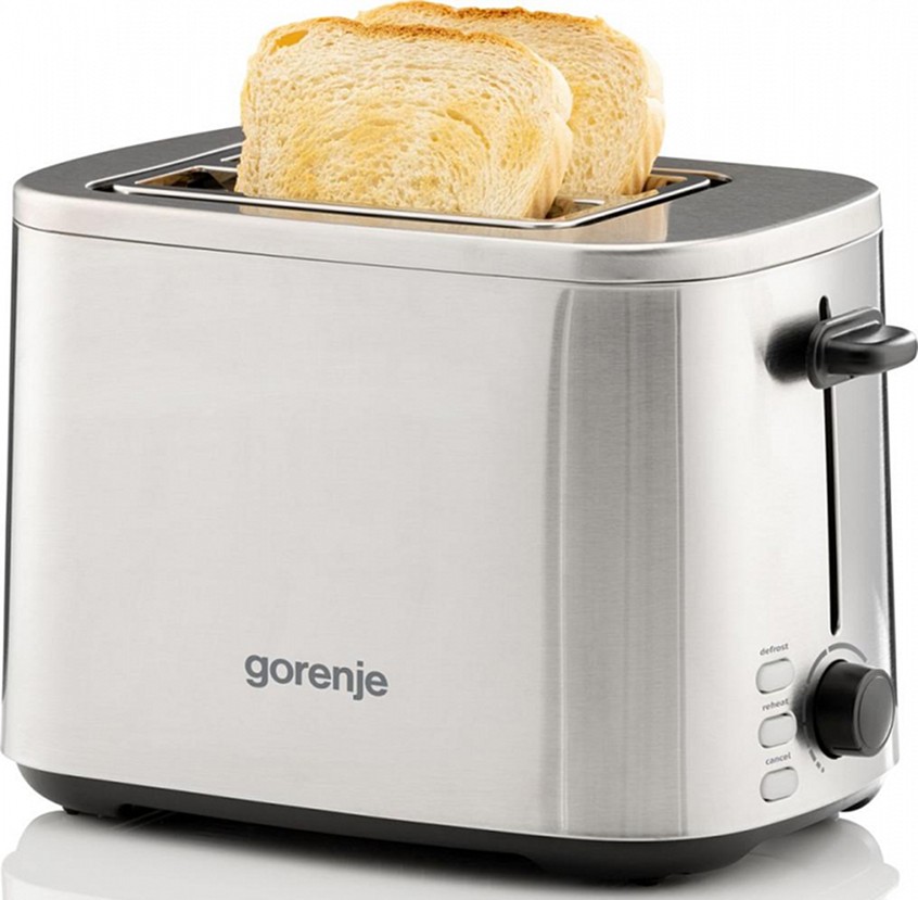 Стационарный тостер Gorenje T800DS — стильный и компактный прибор в корпусе из пластика с отделкой цвета нержавеющей стали.