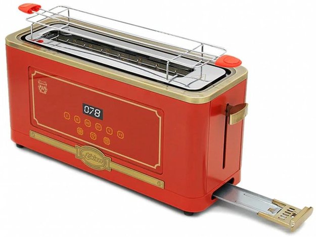 Стильный тостер Kaiser имеет компактный корпус на устойчивых ножках, благодаря которым не пошатывается, даже если хлеб выпрыгивает вверх в конце приготовления. Его главный оттенок — красный. Простое и понятное механическое управление позволяет быстро разобраться во всех функциях. Простое и понятное электронное управление позволяет быстро разобраться во всех функциях. На корпусе расположены сенсорные переключатели для изменения настроек. Благодаря небольшому дисплею еще удобнее следить за процессом.