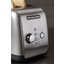 Тостер для двух ломтиков выполнен в серебристом цветовом решении. Поддон для крошек и кнопка отмены приготовления повышают комфорт использования этой модели. Семь степеней поджаривания и решетка для булочек расширяют возможности прибора.