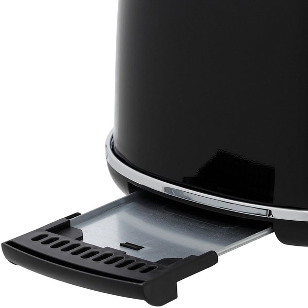 Поддон для крошек — удобная и практичная принадлежность большинства современных тостеров, которая предназначается для того, чтобы крошки не попадали на столешницу и не застревали в отверстиях для размещения ломтиков. Он изготавливается из нержавеющей стали, устойчивой к высоким температурам.