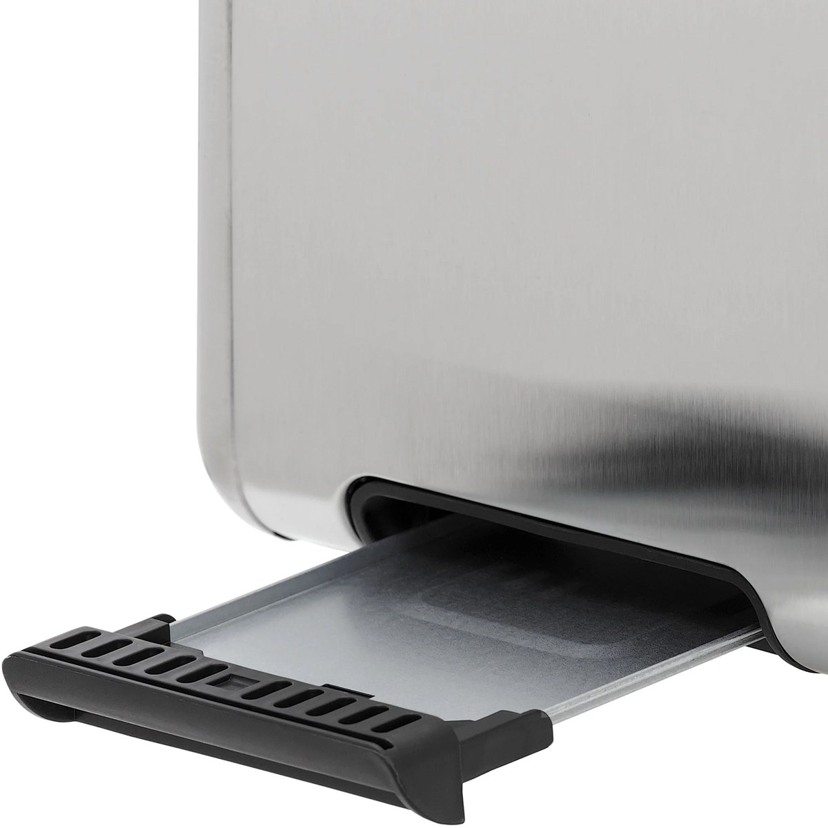 Поддон для крошек — удобная и практичная принадлежность большинства современных тостеров, которая предназначается для того, чтобы крошки не попадали на столешницу и не застревали в отверстиях для размещения ломтиков. Он изготавливается из нержавеющей стали, устойчивой к высоким температурам.