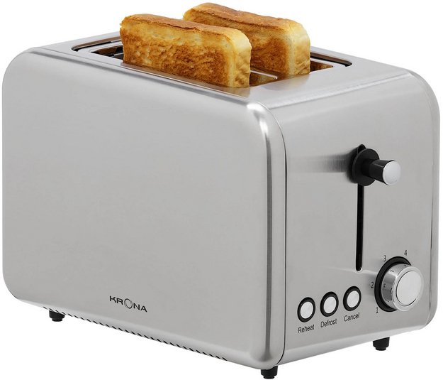 Стильный тостер KRONA имеет компактный корпус на устойчивых ножках, благодаря которым не пошатывается, даже если хлеб выпрыгивает вверх в конце приготовления. Основной материал, из которого изготовлен прибор, — нержавеющая сталь. Его главный оттенок — нержавеющая сталь. Простое и понятное механическое управление позволяет быстро разобраться во всех функциях. Простое и понятное электронное управление позволяет быстро разобраться во всех функциях. На корпусе расположены кнопочные+поворотные переключатели для изменения настроек.