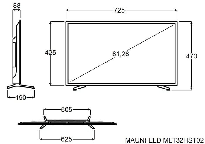Телевизор Maunfeld MLT32HST02 — сбалансированное устройство для повседневного домашнего просмотра, сочетающее современные технологии, надёжность и привлекательное соотношение цены и качества. Модель оснащена LED-дисплеем с прямой подсветкой (Direct LED), обеспечивающей равномерное освещение экрана, улучшенную глубину чёрного и стабильную цветопередачу. Диагональ 32 дюйма делает телевизор универсальным решением для спальни, кухни, гостиной компактного формата или даже офисного пространства.