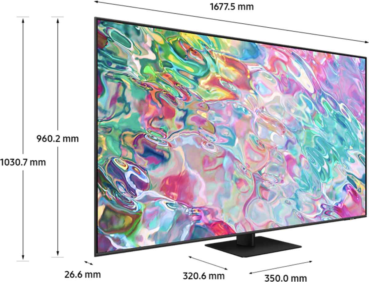 Тип экрана: QLED. Диагональ, ": 75. Цвет: серый. Разрешение, px: 3840х2160. Формат: 16:9.