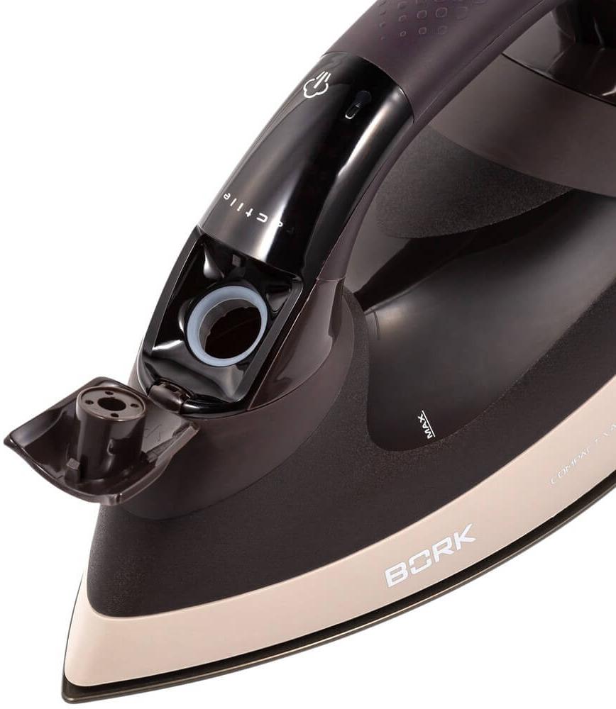 Утюг со встроенным парогенератором в необычном серо-коричневом оттенке.