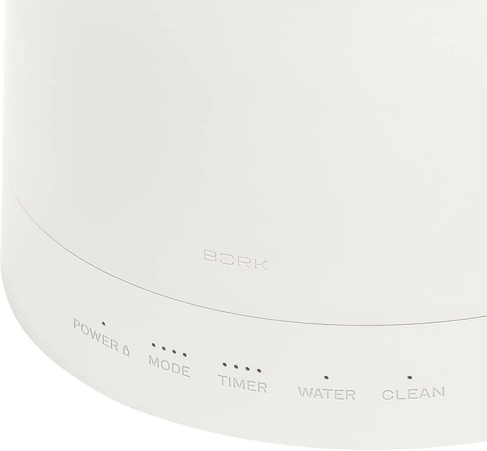 Электронное управление работой увлажнителя воздуха Bork позволяет регулировать параметры одним нажатием кнопки, а информативный дисплей демонстрирует текущие характеристики работы. Отсутствие выступающих регуляторов на корпусе создает лаконичный дизайн.