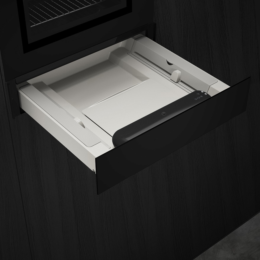 Чтобы открыть рабочую камеру, достаточно нажать на фронтальную панель — не нужны отдельные кнопки или ручки, благодаря чему прибор отлично вписывается в «бесшовный дизайн» наряду с другой встраиваемой техникой. Некоторые модели открываются на всю глубину, некоторые нет — и чтобы полностью открыть рабочую поверхность, нужно выдвинуть ее рукой.