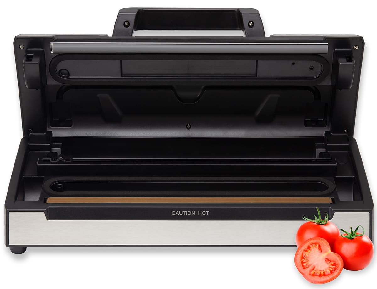 "Современные встраиваемые вакуумные упаковщики устанавливаются в колонну вместе с другими бытовыми приборами — например, духовыми шкафами или микроволновками, так что на виду остается только их фронтальная часть. Для того, чтобы сохранить единый стиль интерьера, большинство моделей вакууматоров оснащается нажимным механизмом открывания. Гладкий фасад без ручки у таких устройств полностью скрывает прибор от глаз. Открывание происходит при легком нажатии на переднюю часть фасада. Меньшее количество моделей оснащается обычными ручками, за которые нужно потянуть, чтобы открыть ящик.