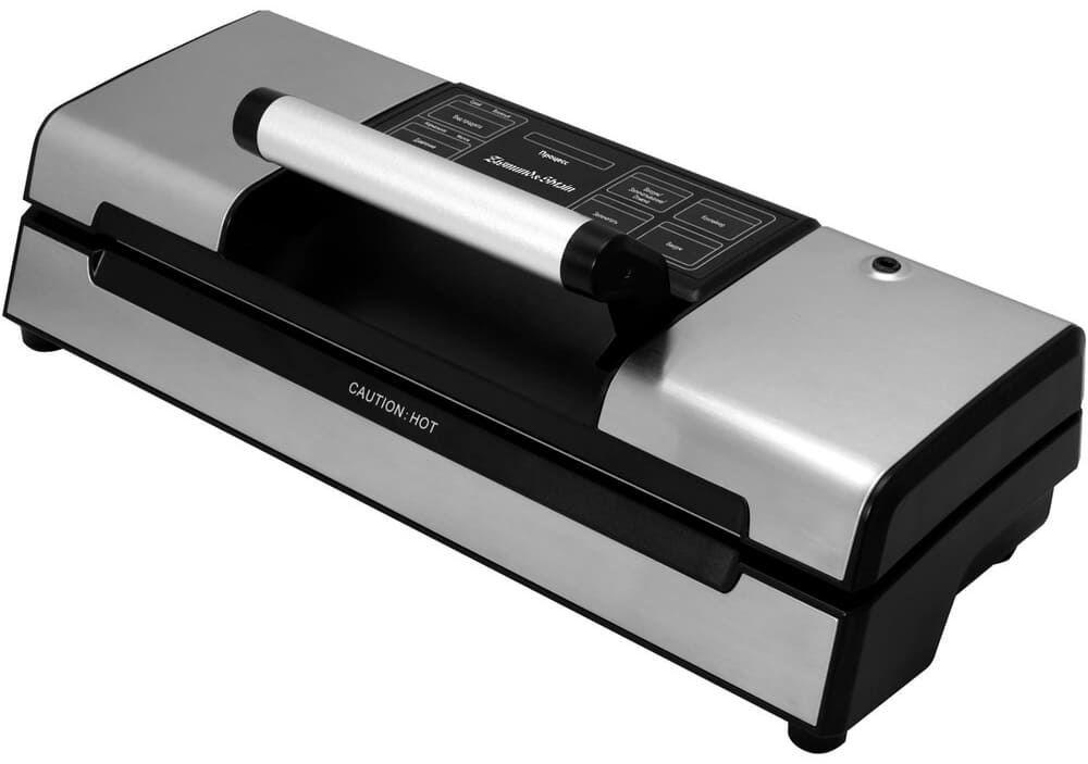 Цвет данной модели — нержавеющая сталь — позволяет интегрировать ее практически в любой интерьер. Установите вакуумный упаковщик в одну нишу с духовкой или в колонну с другим прибором. Благодаря современному электронному управлению можно быстро выбрать необходимый режим и проверить, как продвигается цикл. Камера открывается стандартным способом — за ручку.