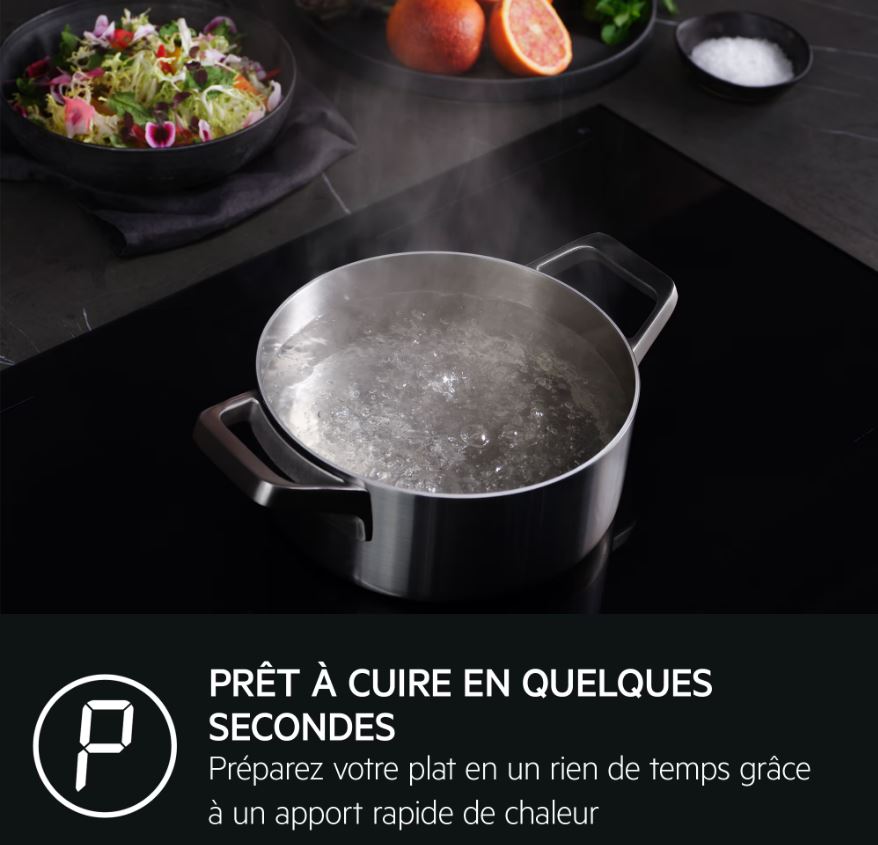 Степень увеличения мощности зависит от изначальных параметров каждой конфорки. Эта функция не только позволяет быстро вскипятить воду: ее рекомендуется использовать для приготовления блюд, требующих быстрой интенсивной обжарки — например, в азиатской кухне или при использовании замороженных продуктов.