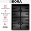 Варочная панель BORA PG11 снабжена двумя газовыми конфорками различного уровня мощности, каждая из которых дополнена защитной системой контроля пламени. Управление устройством осуществляется посредством поворотных регуляторов, размещенных на встраиваемой распределительной коробке. Для упрощения очистки литая решетка для посуды имеет съемную конструкцию.