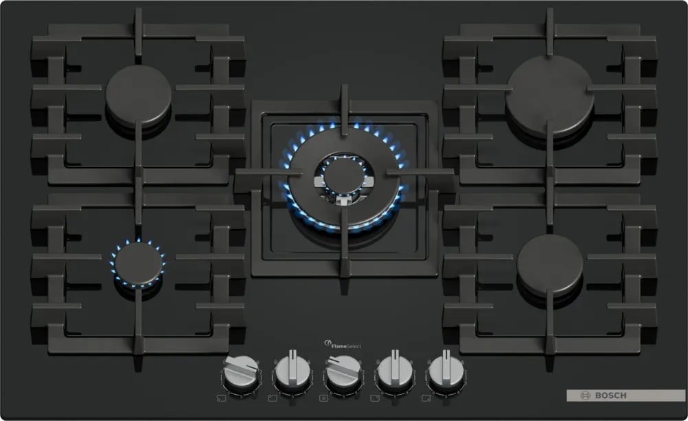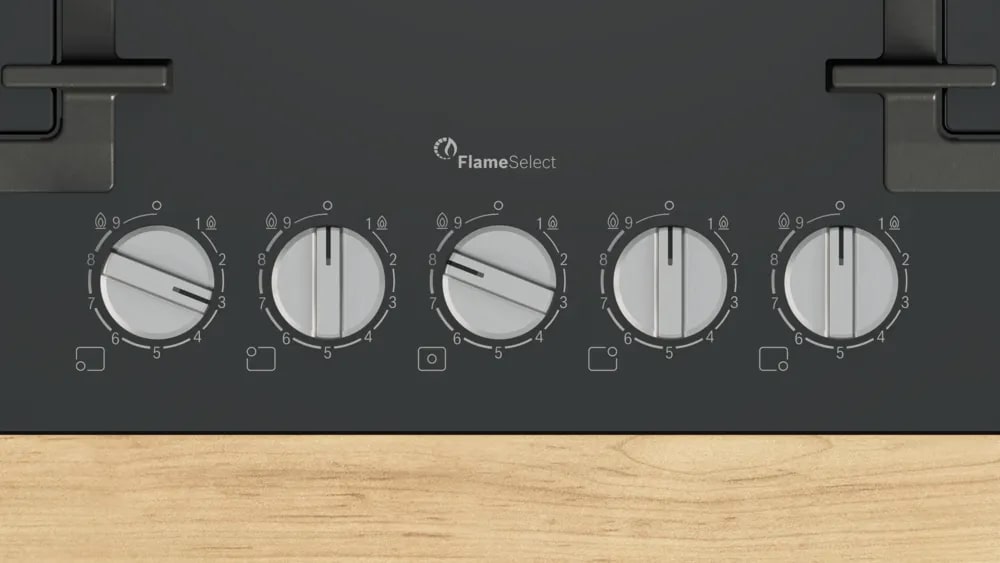 Технология FlameSelect в современных газовых варочных панелях Bosch обеспечивает ступенчатую регулировку пламени на 9 предустановленных уровнях. Конфорки с FlameSelect позволяют точно задавать интенсивность нагрева поворотом специального переключателя, не требуя визуального контроля.