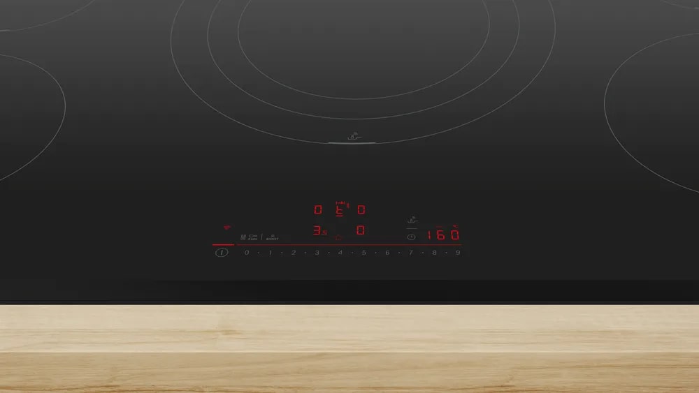 Функция re-Start в индукционных варочных панелях Bosch служит для восстановления настроек приготовления через короткое время после несвоевременного выключения, которое может произойти из-за случайного нажатия на кнопку или из-за попадания на поверхность жидкости или посторонних предметов.