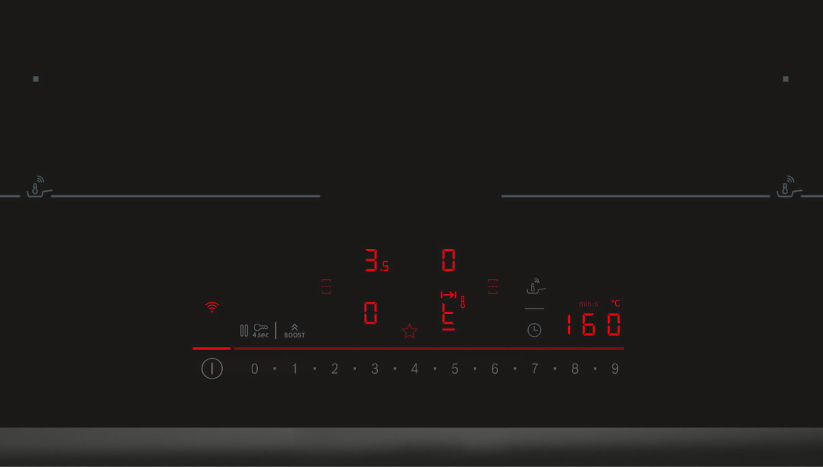 Благодаря функции распознавания посуды нагрев варочной зоны происходит только в том случае, если на варочной панели стоит посуда. Система контролирует каждую варочную зону. Если посуда уже находится на одной из конфорок, то активация зоны происходит одновременно с включением панели конфорок.