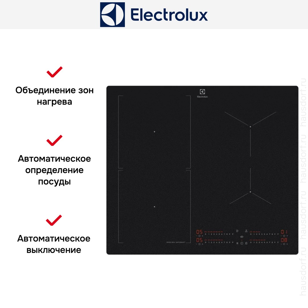 Модель Электролюкс EIS62453IZ входит в дизайн-линейку: SenseBoil. Цвет — черный матовый. Благодаря отсутствию рамки она отлично впишется в интерьер и не займет лишнее место на столешнице, которое можно использовать для работы. Материал самой поверхности: стеклокерамика. Управление этой моделью электронное. Для переключения уровней нагрева, выбора функций используются следующие переключатели: сенсорный слайдер/TouchSlider. Продвинутая система контроля за прибором делают его современным и отвечающим на главные запросы покупателя.