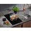 Хорошей альтернативой рамке является металлический профиль, который обычно устанавливается только спереди или сбоку. Он также не позволяет жидкости стекать на столешницу, но не «съедает» полезную площадь. Что касается варочных панелей без рамки, неизменной популярностью пользуются модели со скошенным краем. Такая обработка называется фацетной — внешняя сторона панели имеет огранку под углом 45 градусов. Такая панель очень легко чистится и эффектно выглядит, а современные методы огранки защищают края от сколов.