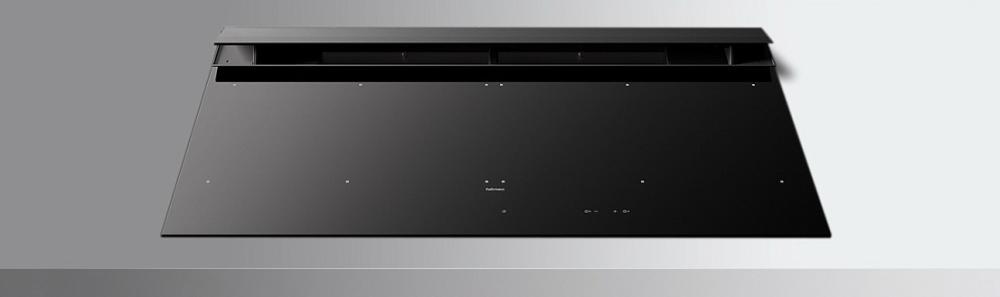 Вытяжка, встроенная в варочную панель — достаточно удобный вариант, позволяющий сэкономить место в кухне. Такая конструкция позволяет лучше улавливать испарения, не давая им распространяться по всему помещению, и способствует более качественной очистке воздуха. Большинство подобных моделей может работать только в режиме рециркуляции воздуха, с удалением капель жира, сажи, неприятных запахов при помощи системы фильтров. Работу в режиме отвода загрязненного воздуха через систему вентиляции организовать довольно сложно, поскольку вытяжка располагается низко над полом. Часто варочная панель находится на кухонном острове, что также мешает присоединению к вентиляции. Еще одна особенность подобных моделей состоит в том, что под варочной панелью нельзя разместить духовку или другую технику, так как место будет занято.