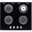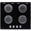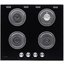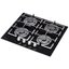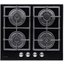 Конфорки располагаются на панели из черного закаленного стекла. Она гармонично и стильно сочетается с чугунными держателями. Регуляторы в цвете нержавеющая сталь дополняют современный образ модели. Ручки легко крутятся для комфортной настройки уровня мощности. В каждый элемент интегрирован автоматический электроподжиг.