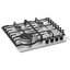 Выбор газовой варочной панели чаще всего обусловлен тем, что в частный дом или квартиру проведен именно газ в качестве обогрева. Работать с этой моделью довольно просто, так как мощность нагрева видна невооруженным взглядом — по силе огня в горелке. Количество конфорок в этой модели: 4. Горелки с двойной короной позволяют увеличивать мощность нагрева в зависимости от диаметра посуды.