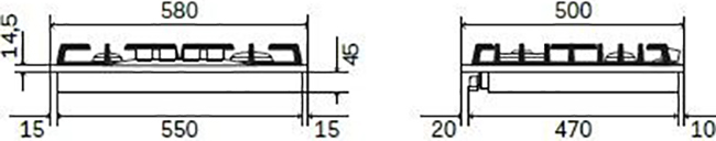 Стандартная ширина устройства составляет около 59–60 см: таковы наиболее востребованные четырехконфорочные модели. Подобный размер облегчает встраивание варочной панели в стандартную кухонную столешницу.