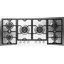 Выбор газовой варочной панели чаще всего обусловлен тем, что в частный дом или квартиру проведен именно газ в качестве обогрева. Работать с этой моделью довольно просто, так как мощность нагрева видна невооруженным взглядом — по силе огня в горелке. Количество конфорок в этой модели: 6. Горелки с двойной короной позволяют увеличивать мощность нагрева в зависимости от диаметра посуды.