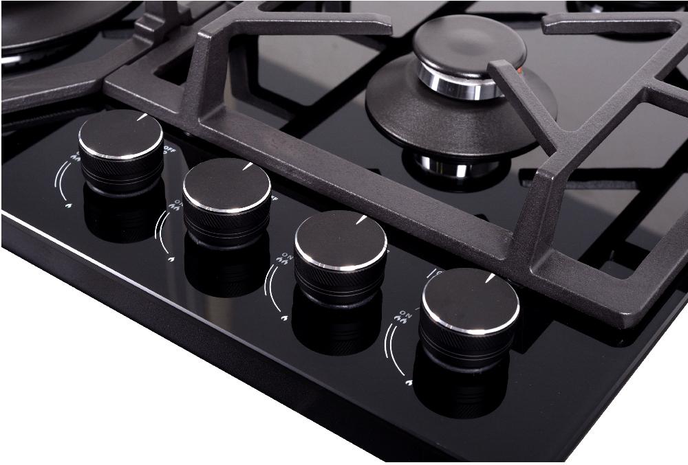 Выбор газовой варочной панели чаще всего обусловлен тем, что в частный дом или квартиру проведен именно газ в качестве обогрева. Работать с этой моделью довольно просто, так как мощность нагрева видна невооруженным взглядом — по силе огня в горелке. Количество конфорок в этой модели: 4.