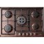 Реже выпускаются панели других оттенков — коричневого, красного, оранжевого, зеленого, цвета меди, фиолетового, бордо — их достаточно трудно сочетать с кухонными гарнитурами и бытовыми приборами. Газовые варочные панели необычных оттенков нередко оснащаются и оригинальной медной, бронзовой или латунной фурнитурой в стиле ретро. Любители цветных варочных панелей могут обратить внимание на продукцию Smeg, Kuppersberg, Kaiser, Ilve, Franke и ряда других производителей.