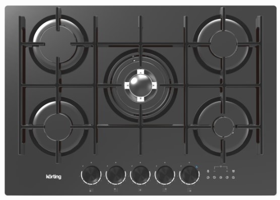 Выбор газовой варочной панели чаще всего обусловлен тем, что в частный дом или квартиру проведен именно газ в качестве обогрева. Работать с этой моделью довольно просто, так как мощность нагрева видна невооруженным взглядом — по силе огня в горелке. Количество конфорок в этой модели: 5.