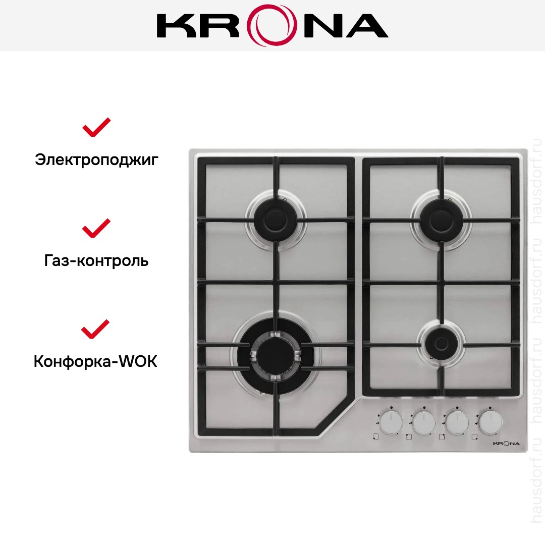Газовая варочная панель KRONA NEBEL 60 IX W в Санкт-Петербурге