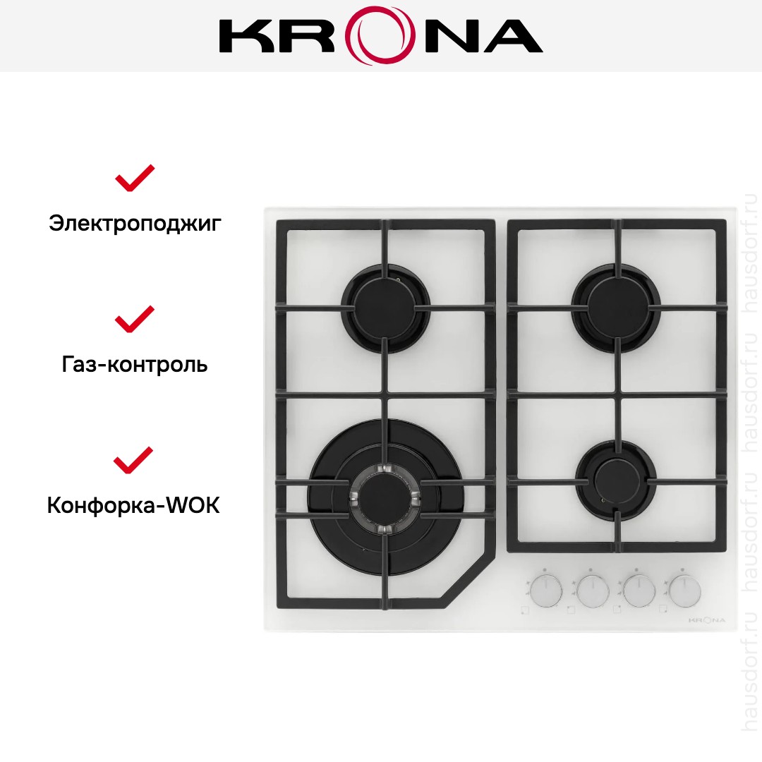 Газовая варочная панель KRONA NEBEL 60 WH W в Санкт-Петербурге