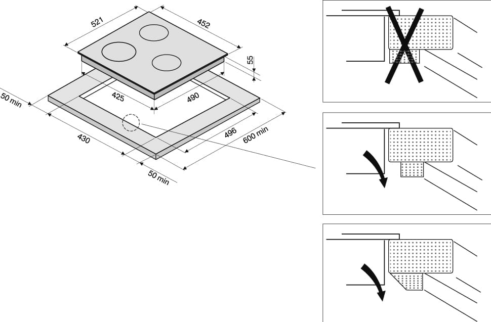 Размеры ниши для встраивания необходимо знать для правильной установки варочной панели, удобного доступа к конфоркам, обеспечения безопасности при приготовлении пищи. Выбирая варочную панель, требуется прежде всего определить место ее расположения. Не рекомендуется устанавливать варочные поверхности слишком близко к мойке — расстояние должно составить не менее 60 см и не более 1 метра. Рабочая поверхность между ними понадобится для подготовки продуктов.