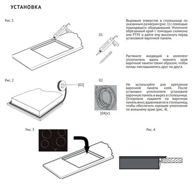 Отверстие в нише выполняют, исходя из размеров самой варочной панели — они должны соответствовать друг другу либо немного превышать размеры выреза. При выборе наиболее распространенной варочной панели с 4 конфорками в столешнице вырезается отверстие шириной 59 см и глубиной около 49-50 см. Толщина столешницы должна быть немного меньше, чем высота варочной панели, в противном случае панель придется заглубить, чтобы она не слишком выступала.