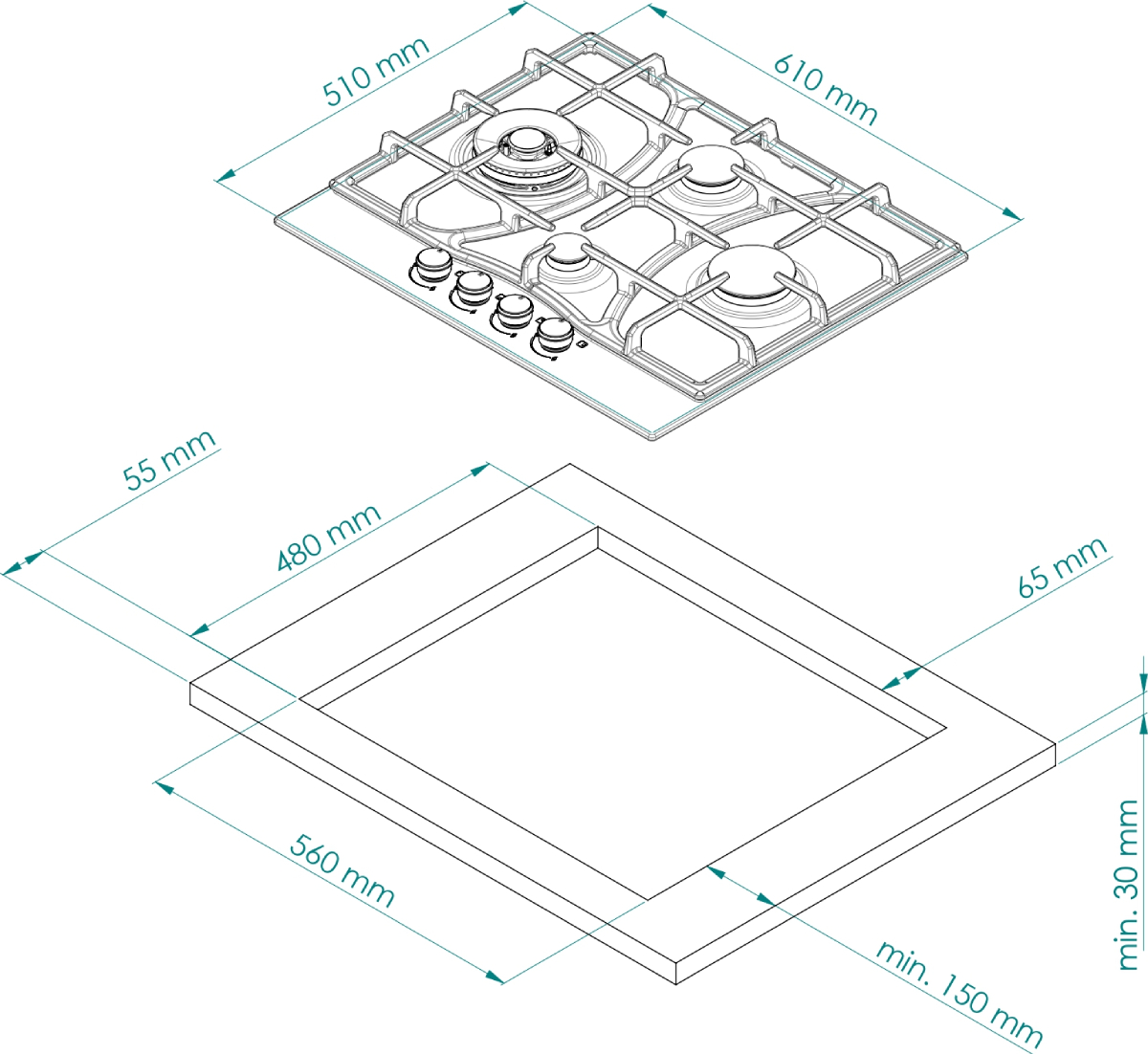 Глубина варочной панели представляет собой расстояние от ближайшей к пользователю ее точки до самой дальней. В первую очередь глубина определяется соответствующими размерами столешницы, куда варочная панель будет встроена, и уже во вторую — количеством и расположением конфорок.