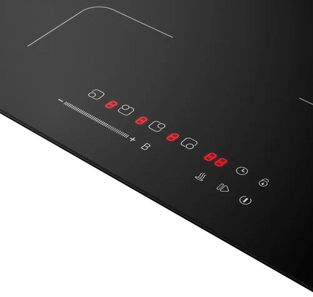 Варочная панель работает на индукционном нагреве — это значит, что повышается температура непосредственно посуды, в которой готовится блюдо. Таким образом промежуточная ступень с предварительным нагревом конфорки пропускается — сокращается время, повышается безопасность. Количество конфорок в этой модели: 4.