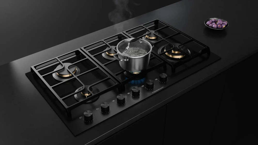 Выбор газовой варочной панели чаще всего обусловлен тем, что в частный дом или квартиру проведен именно газ в качестве обогрева. Работать с этой моделью довольно просто, так как мощность нагрева видна невооруженным взглядом — по силе огня в горелке. Количество конфорок в этой модели: 6.