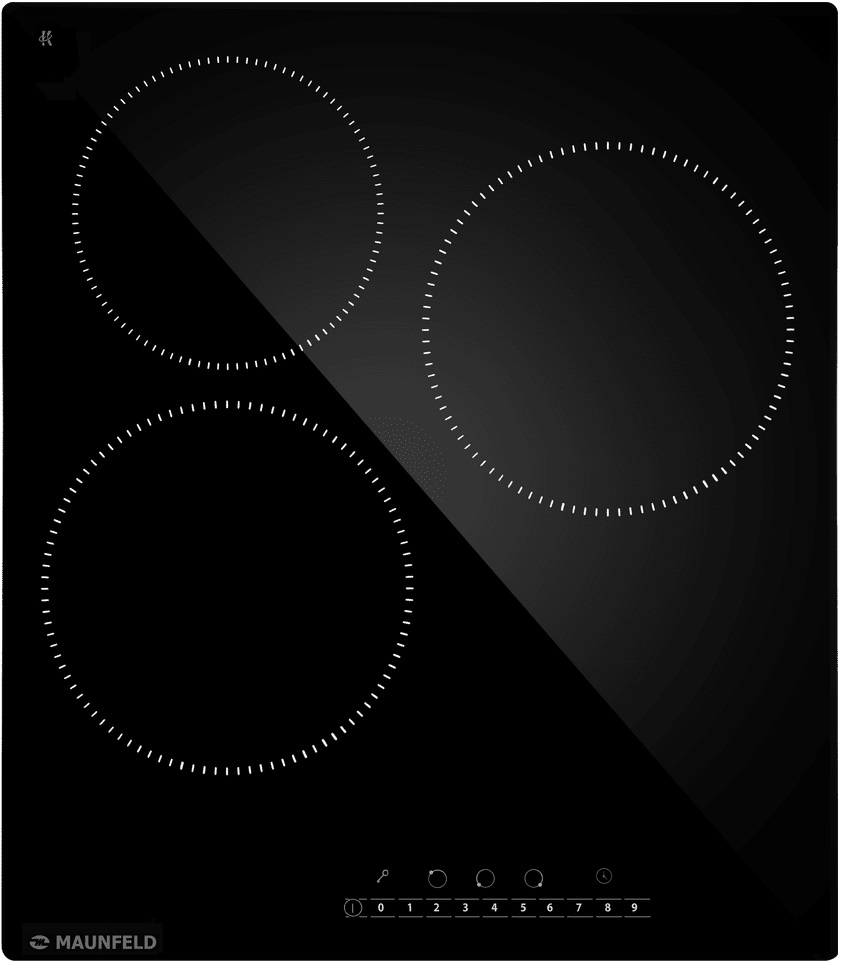Данная варочная панель имеет классический электрический нагрев, при котором сначала раскаляются конфорки (точнее элементы, скрытые под поверхностью), а затем передают это тепло посуде. Разобраться, как с ней работать, просто даже пожилым людям, привыкшим к плитам. Количество конфорок в этой модели: 3.