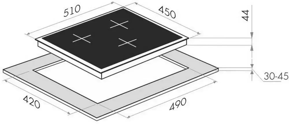 Глубина варочной панели представляет собой расстояние от ближайшей к пользователю ее точки до самой дальней. В первую очередь глубина определяется соответствующими размерами столешницы, куда варочная панель будет встроена, и уже во вторую — количеством и расположением конфорок.