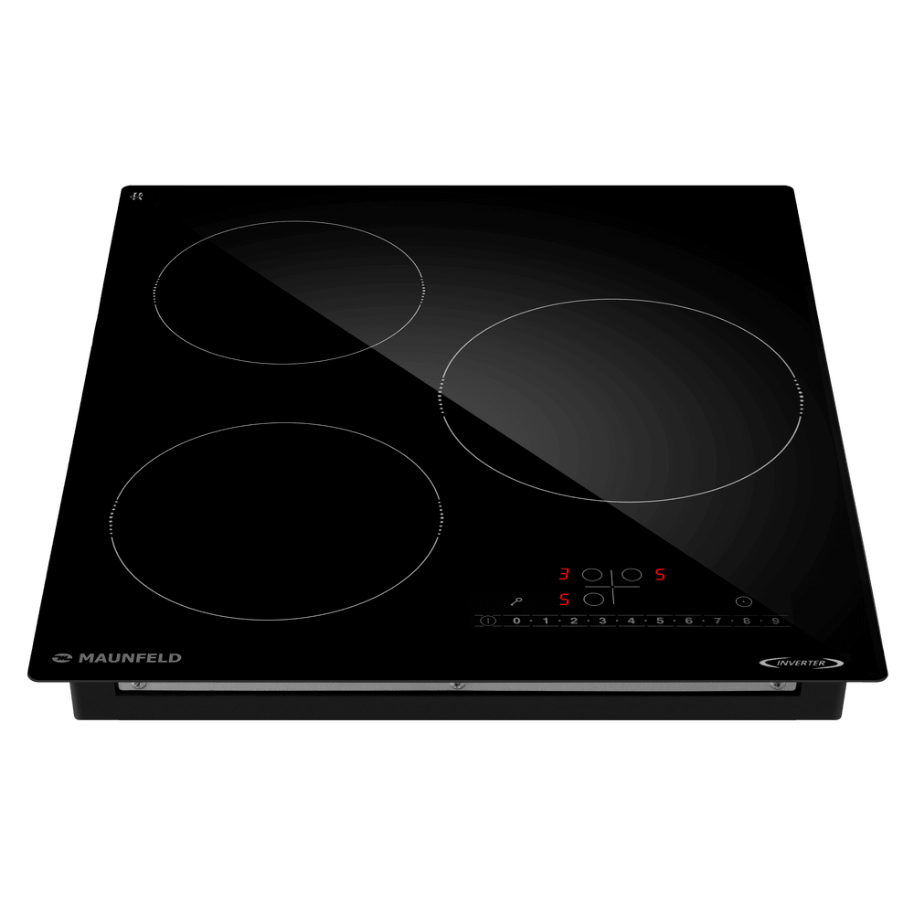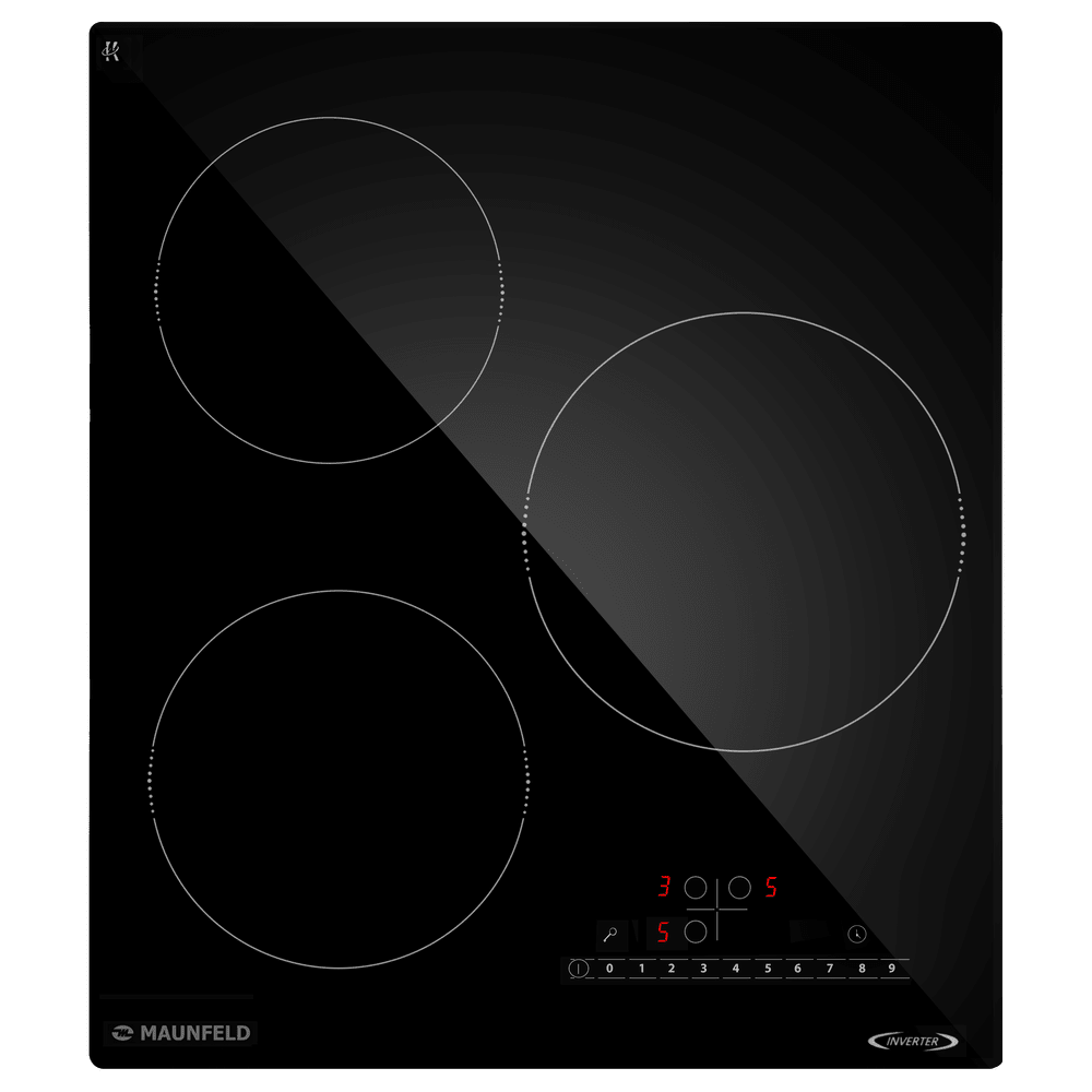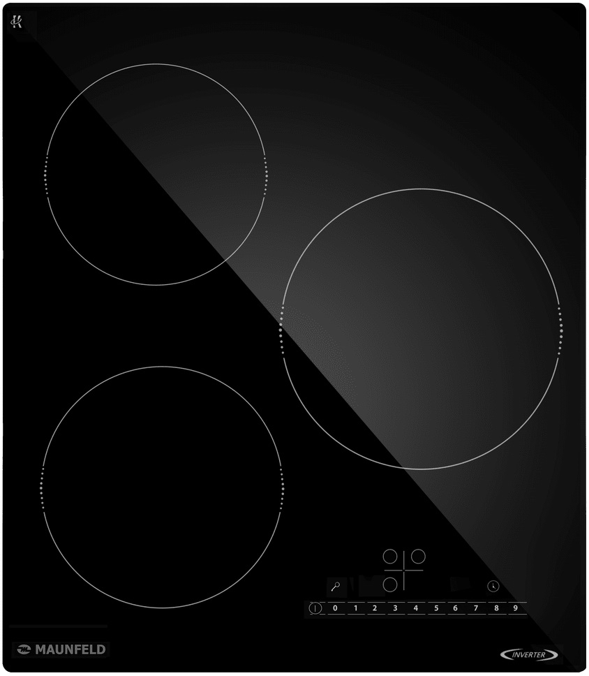 Варочная панель работает на индукционном нагреве — это значит, что повышается температура непосредственно посуды, в которой готовится блюдо. Таким образом промежуточная ступень с предварительным нагревом конфорки пропускается — сокращается время, повышается безопасность. Количество конфорок в этой модели: 3.