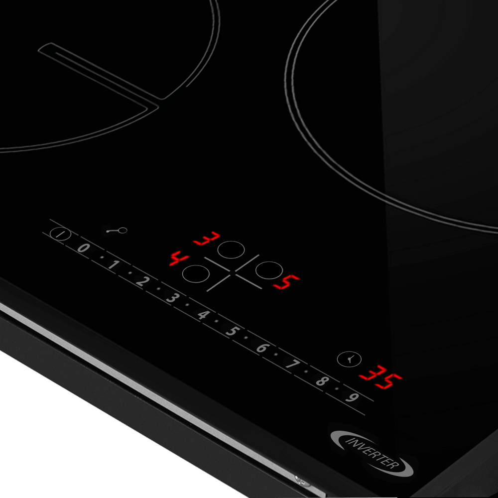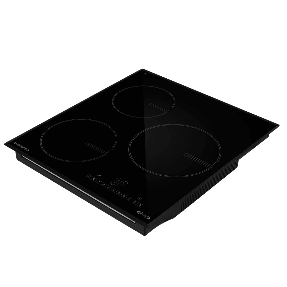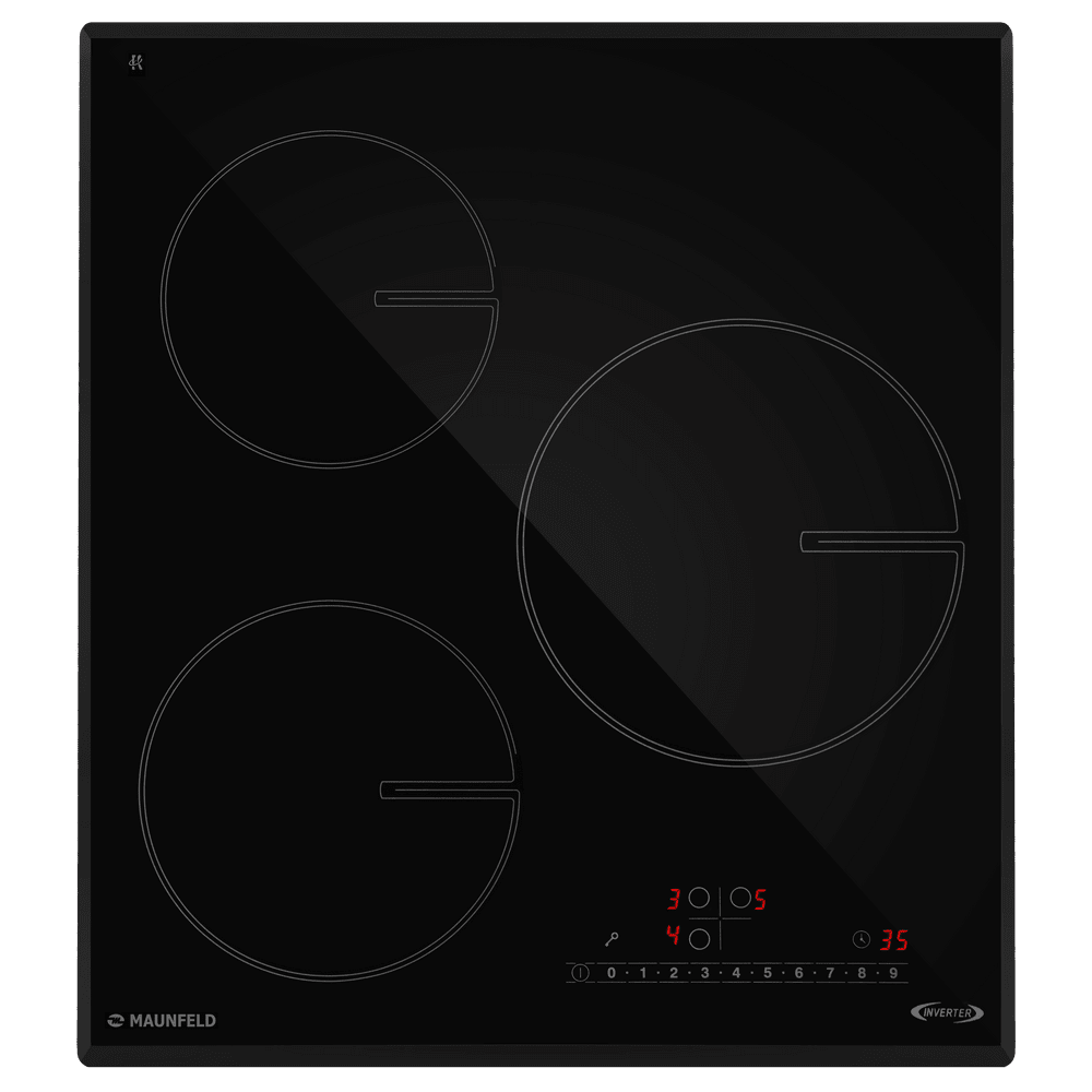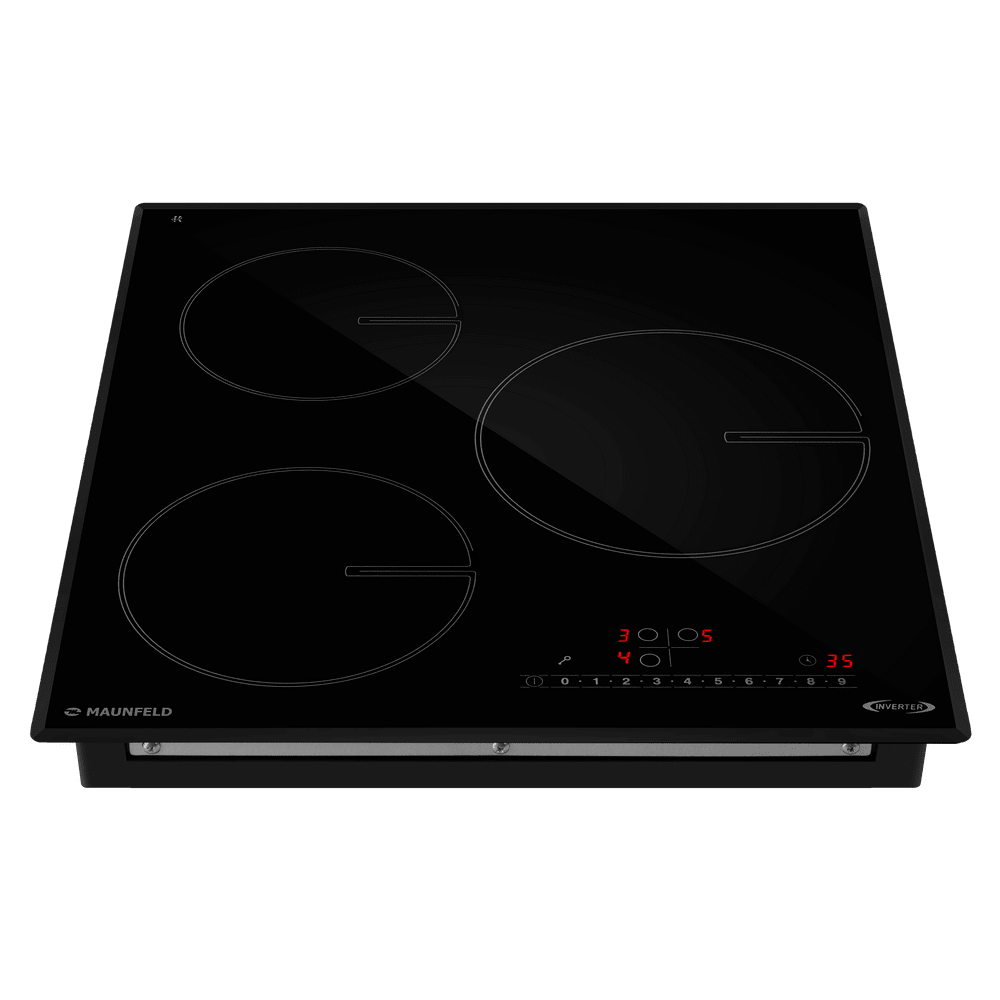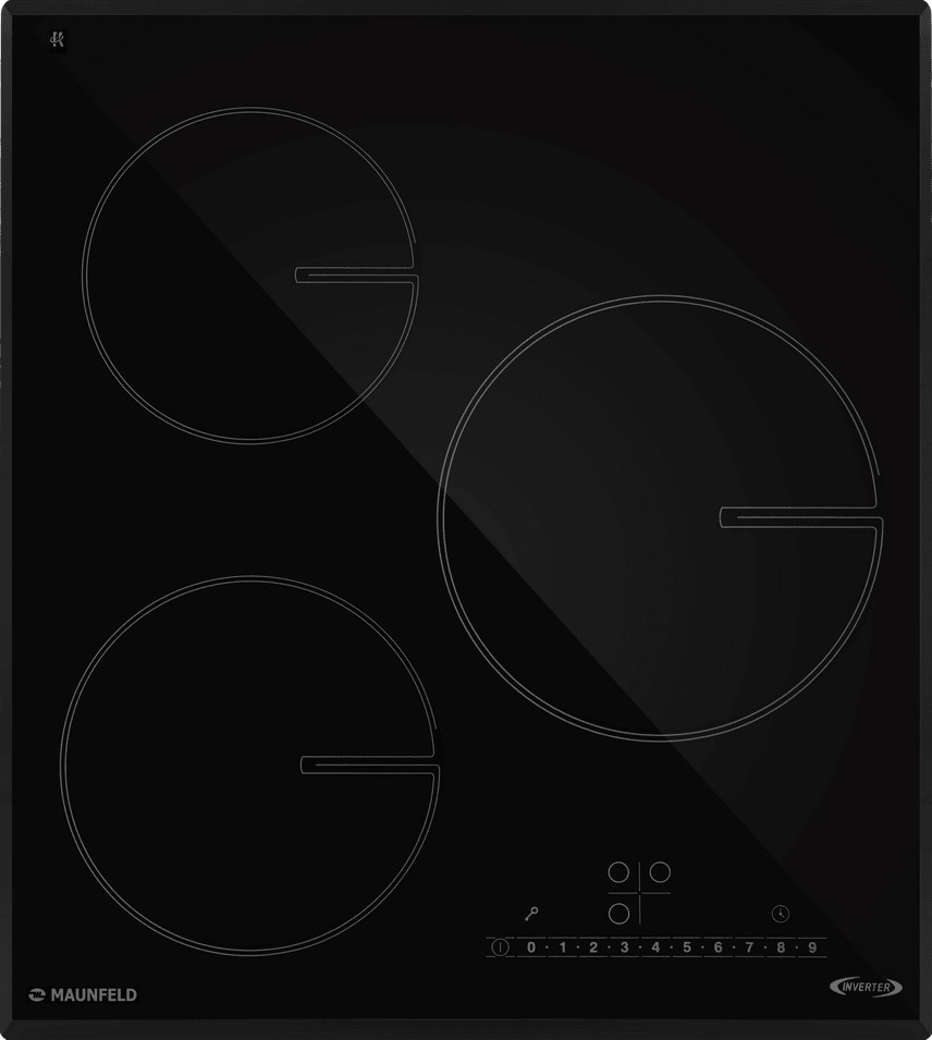 Варочная панель работает на индукционном нагреве — это значит, что повышается температура непосредственно посуды, в которой готовится блюдо. Таким образом промежуточная ступень с предварительным нагревом конфорки пропускается — сокращается время, повышается безопасность. Количество конфорок в этой модели: 3.
