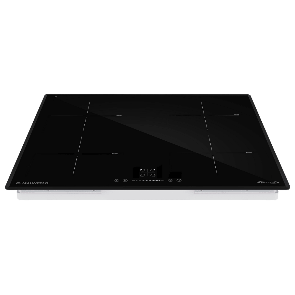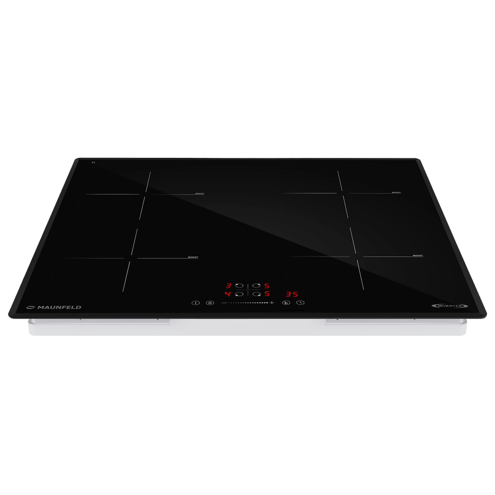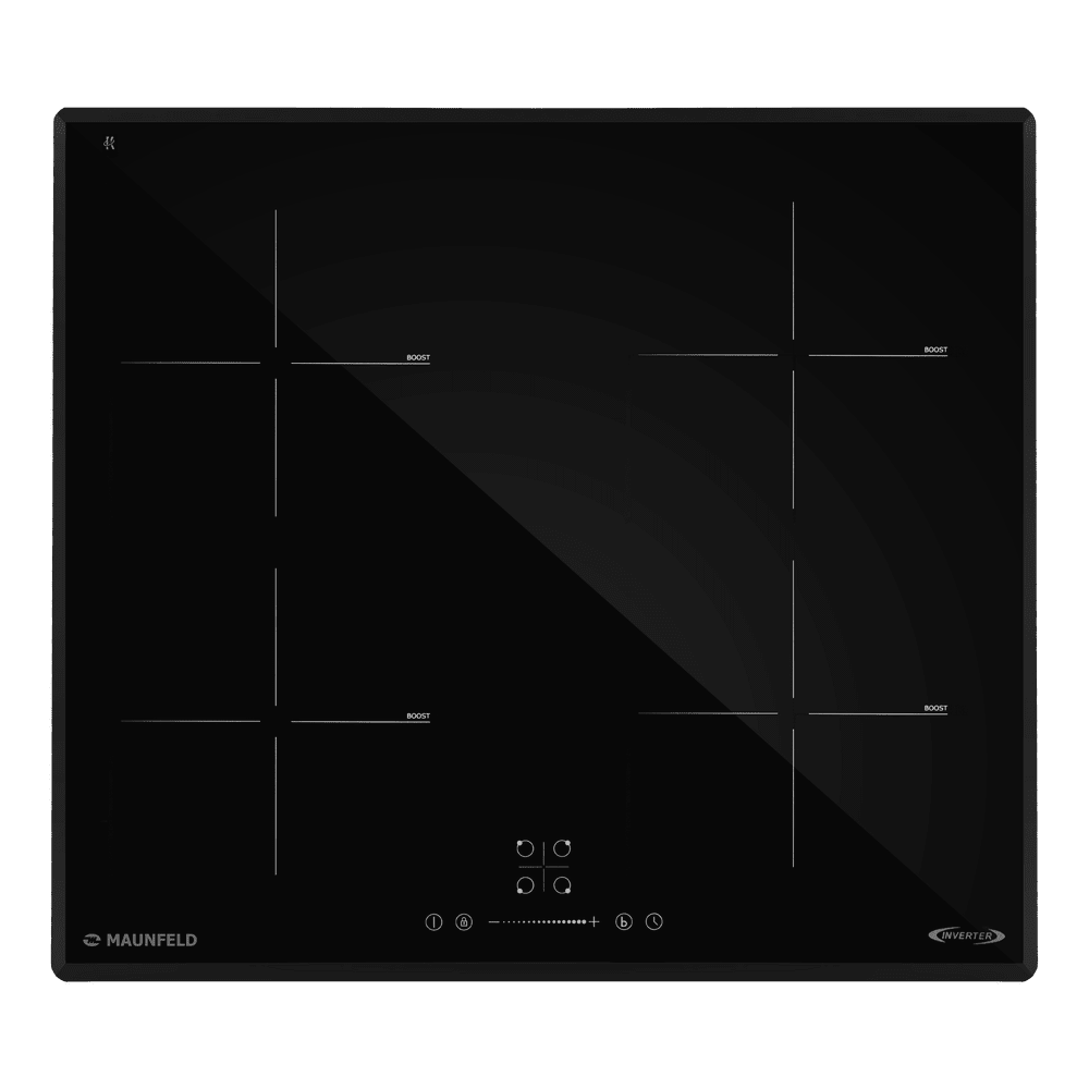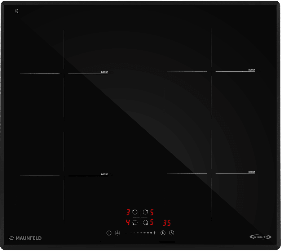 Варочная панель работает на индукционном нагреве — это значит, что повышается температура непосредственно посуды, в которой готовится блюдо. Таким образом промежуточная ступень с предварительным нагревом конфорки пропускается — сокращается время, повышается безопасность. Количество конфорок в этой модели: 4.