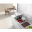 Хорошей альтернативой рамке является металлический профиль, который обычно устанавливается только спереди или сбоку. Он также не позволяет жидкости стекать на столешницу, но не «съедает» полезную площадь. Что касается варочных панелей без рамки, неизменной популярностью пользуются модели со скошенным краем. Такая обработка называется фацетной — внешняя сторона панели имеет огранку под углом 45 градусов. Такая панель очень легко чистится и эффектно выглядит, а современные методы огранки защищают края от сколов.