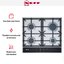 Преимущества подобной функции очевидны: пользователю не нужно «на глазок» определять высоту пламени: предустановленные уровни позволяют выставлять его максимально точно. Поворотные ручки фиксируются на каждом уровне, а на панели управления отображаются возможные значения мощности. С функцией FlameSelect можно не опасаться, что блюдо будет пережарено или пригорит из-за слишком сильного пламени. Исключается и вариант, когда при случайном движении пламя угаснет, даже если блюдо готовится на минимальной мощности, что дополнительно способствует безопасности использования этих варочных панелей.