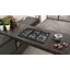 Эта варочная панель — одна из немногих газовых моделей, оснащенных индикатором остаточного тепла, предупреждающим о том, что конфорка еще не успела остыть. Поверхность изготовлена из нержавеющей стали, устойчивой к высоким температурам и механическому воздействию. Посуда устойчиво размещается на массивной решетке из чугуна с эмалевым покрытием. Раздельную решетку удобно снимать и мыть под струей воды. В передней части располагается механическая панель управления с цифровым дисплеем и поворотными переключателями, оснащенными не нагревающимися рукоятками.