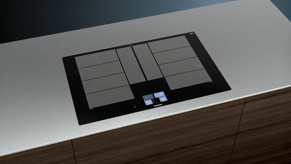 Модель Сименс EX801KYW1E входит в дизайн-линейку: iQ700. Цвет — черный. Благодаря отсутствию рамки она отлично впишется в интерьер и не займет лишнее место на столешнице, которое можно использовать для работы. Материал самой поверхности: стеклокерамика. Управление этой моделью электронное. Для переключения уровней нагрева, выбора функций используются следующие переключатели: сенсорные/TouchControl. Продвинутая система контроля за прибором делают его современным и отвечающим на главные запросы покупателя.