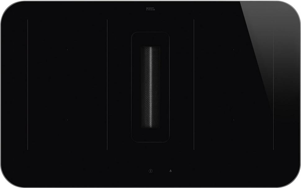 Вытяжка, встроенная в варочную панель — достаточно удобный вариант, позволяющий сэкономить место в кухне. Такая конструкция позволяет лучше улавливать испарения, не давая им распространяться по всему помещению, и способствует более качественной очистке воздуха. Большинство подобных моделей может работать только в режиме рециркуляции воздуха, с удалением капель жира, сажи, неприятных запахов при помощи системы фильтров. Работу в режиме отвода загрязненного воздуха через систему вентиляции организовать довольно сложно, поскольку вытяжка располагается низко над полом. Часто варочная панель находится на кухонном острове, что также мешает присоединению к вентиляции. Еще одна особенность подобных моделей состоит в том, что под варочной панелью нельзя разместить духовку или другую технику, так как место будет занято.