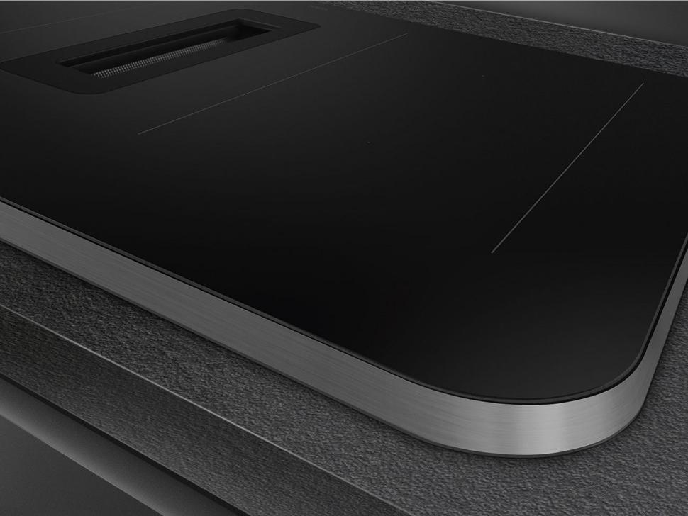 Хорошей альтернативой рамке является металлический профиль, который обычно устанавливается только спереди или сбоку. Он также не позволяет жидкости стекать на столешницу, но не «съедает» полезную площадь. Что касается варочных панелей без рамки, неизменной популярностью пользуются модели со скошенным краем. Такая обработка называется фацетной — внешняя сторона панели имеет огранку под углом 45 градусов. Такая панель очень легко чистится и эффектно выглядит, а современные методы огранки защищают края от сколов.