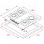 Выбор газовой варочной панели чаще всего обусловлен тем, что в частный дом или квартиру проведен именно газ в качестве обогрева. Работать с этой моделью довольно просто, так как мощность нагрева видна невооруженным взглядом — по силе огня в горелке. Количество конфорок в этой модели: 4. Горелки с двойной короной позволяют увеличивать мощность нагрева в зависимости от диаметра посуды.