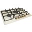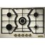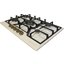 Zigmund Shtain GN 248.71 X — бежевая варочная панель шириной 75 см. Модель дополнена латунной фурнитурой и прочными чугунными решетками для размещения посуды. Функционал устройства расширяют газ-контроль и автоматический электроподжиг конфорок.
