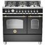 Устройства с тремя духовками также имеют один основной и две дополнительных шкафа разного объема: например, плиты Bertazzoni оснащены большой духовкой объемом 69 литров, средней объемом 54 литра и малой объемом 24 литра. Духовки располагаются в два ряда: две меньшие духовки в одном ряду, большая и ящик для посуды в другом.